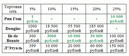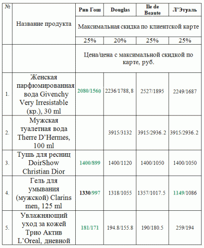 Каждый магазин с радостью объявляет о том, что предлагает своим покупателям самые лучшие и самые выгодные цены. Rasprodaga.Ru не привыкла верить на слово, и поэтому мы решили проанализировать цены основных сетевых магазинов парфюмерии и косметики, чтобы определить, кто действительно предлагает своим покупателям лучшие цены, чьи скидки и акции в самом деле выгодны для потребителей. Мы сравнили цены на популярные продукты, а также текущие спецпредложения и скидки по дисконтным картам. И получили, мягко говоря, неожиданные результаты. Ценовая битва гигантов: «Л’Этуаль», «Рив Гош», Douglas, Ile de Beaute.Как все начиналось