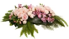 Следует использовать цветы максимально выносливые, кожистые, жёсткие (антуриумы, каллы, стрелитции и т.д). Или наоборот мелкие и пушистые. Например, всем известная гипсофила. В плотном сплетении, в составе гирлянды или веночка, она стойко перенесёт любые неожиданности переезда.